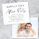 Budget-friendly minimal and chic black and white wedding after party reception invitation for a post elopement or wedding celebration featuring "Happily Ever After Party" written in a mix of simple typography and an elegant modern script and your photo n the back. A traditional card stock version is also available (message us for the link).