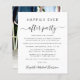 Chic budget-friendly elopement or private wedding announcement combined with a post-wedding reception or celebration party invitation. On the front, "Happily Ever After Party" is written in simple typography and a stylish script with swashes. Personalise your marriage announcement and invitation and add your names in a signature-like script. The reverse side features your favourite wedding photo, your first names and wedding date.