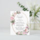 Beautiful and elegant Quinceanera Invitation. Blush pink roses are nestled in white hydrangea flowers and greenery. Together they decorate an elegant oval gold frame. The text is a combination of upright and italic fonts. Easy to customise. You can change the font, font size and colour as well as the colour on the back.