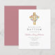 Budget Pink Floral Wreath Cross Baptism Invitation