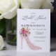 Design structure is based on awesome high heel shoe at the bottom left corner with sparkles and cute pink bouquet . Luxury and Elegant. This type of invitations have special affordable price and the dimensions are 4,5' x 5,6' ( the envelope is available).