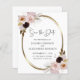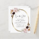 Budget Blush Pink Roses Gold Metallic Wedding Save the Date Invitation... Our affordable floral Save the Date card features bouquets of beautiful blush pink roses curved around a faux gold metallic oval frame creating an elegant border for the invitation text within. The back of the card contains your return address, wedding website information, and a QR code graphic template you can replace with your own (or delete). All example text (except for the Save the Date text graphic) on both sides of the card can be easily revised with your own details on the personalisation template.