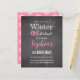 This "Winter Onederland" girl's first birthday party invitation features subtle grey snowflakes on a chalkboard background. Personalise with your little girl's name and party details in pink and white. The reverse features a white snowflake pattern on a pink background.