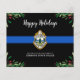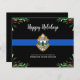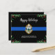 Send Merry Christmas greetings to friends, business' , fellow law enforcement departments and your community with this unique Thin Blue Line Police Department Christmas Card - Modern black and blue with holly leaves and berries. Personalise with police department logo, message and department . These budget merry christmas postcards need to be mailed as oversized postcards so may incur standard postage fees but they don't need an envelope or a return address label. COPYRIGHT © 2020 Judy Burrows, Black Dog Art - All Rights Reserved. Budget Police Christmas Custom Logo Holiday Card