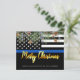 Send Merry Christmas greetings to friends, family, fellow law enforcement departments and your community with this unique Thin Blue Line Police Merry Christmas Card - American Flag in police flag colours, modern black and blue with holly leaves and berries and elegant gold script. Personalise with your message and family name or police department . These police Christmas cards are perfect for police and law enforcement families as well as police departments. COPYRIGHT © 2020 Judy Burrows, Black Dog Art - All Rights Reserved. Budget Police Christmas Thin Blue Line Law Enforcement Holiday Card