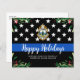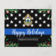 Send Merry Christmas greetings to friends, business' , fellow law enforcement departments and your community with this unique Thin Blue Line Police Department Christmas Card - American Flag in police flag colours, modern black and blue with holly leaves and berries. Personalise with police department logo, message and department . These budget merry christmas postcards need to be mailed as oversized postcards so may incur standard postage fees but they don't need an envelope or a return address label. COPYRIGHT © 2020 Judy Burrows, Black Dog Art - All Rights Reserved. Budget Police Department Christmas Thin Blue Line Holiday Postcards