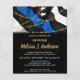 Thin Blue Line Police Graduation Invitations . Celebrate your new police academy graduation, and invite friends and family to your police officer graduation party with this Thin Blue Line Flag Police Graduation Invitation. USA American flag design in Police Flag colours, modern trendy black white and blue with gold string lights design. This police officer graduation invitation is also perfect for police retirement invitations, change venue in personalisation. See our collection for matching police graduation gifts, police academy graduation party favours, and supplies. COPYRIGHT © 2021 Judy Burrows, Black Dog Art - All Rights Reserved. Budget Police Officer Graduation Party Invitation
