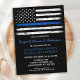 Thin Blue Line Police Retirement Invitations or Police Graduation Party Invitations. Celebrate years of dedicated service, or celebrate your new police academy graduate, and invite friends and family to your law enforcement party with this rustic wood Thin Blue Line Flag Police Retirement Invitation and Police academy graduation invitations - USA American flag design in Police Flag colours, distressed design.This police officer retirement invitation is also perfect for police academy graduation invitations, change venue in personalisation. These budget police retirement invitation cards are an alternative to free police retirement invitations . See our collection for matching police retirement gifts, police graduation gifts,party favours, and supplies. COPYRIGHT © 2021 Judy Burrows, Black Dog Art - All Rights Reserved. Budget Thin Blue Line Police Officer Retirement