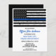 Thin Blue Line Police Retirement Invitations or Police Graduation Party Invitations. Celebrate years of dedicated service, or celebrate your new police academy graduate, and invite friends and family to your law enforcement party with this rustic wood Thin Blue Line Flag Police Retirement Invitation and Police academy graduation invitations - USA American flag design in Police Flag colours, distressed design.This police officer retirement invitation is also perfect for police academy graduation invitations, change venue in personalisation. These budget police retirement invitation cards are an alternative to free police retirement invitations . See our collection for matching police retirement gifts, police graduation gifts,party favours, and supplies. COPYRIGHT © 2021 Judy Burrows, Black Dog Art - All Rights Reserved. Budget Police Retirement Thin Blue Line Invitation