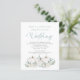A value for money BUDGET alternative on a smaller size 4.5 x 5.6” semi-gloss 110lbs weight, which is of similar thickness to a postcard (however is not suitable to use as a postcard.). PLEASE NOTE there is ONE per sheet. Budget Pumpkins Teal Foliage QR Wedding Invitation. Add your QR code to your wedding website on the back makes this a convenient option for your guests to RSVP and see all the details without the need for separate RSVP and details cards. Wedding is in a stylish set script and easily personalise the rest of the text. Three white pumpkins with teal blue foliage and white florals are at the bottom for an autumnal feel. You can create QR codes for free online. Simply search “QR code creator” and lots of options come up to create for free.