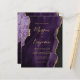 This elegant wedding invitation features a background image of purple watercolor agate trimmed with faux gold glitter. The customisable text combines gold-coloured modern handwriting, copperplate and italic fonts. The reverse side features a coordinating purple and gold agate design.