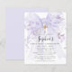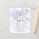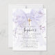 Blush pink watercolor coquette bow is decorated with roses and sage green greenery. A gold cross is placed above the text. Your daughter's name is written in a beautiful calligraphy script. All text is editable.