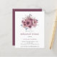 Purple Florals Rehearsal Dinner Invitation. A budget friendly SMALLER 4.5” x 5.6” alternative. Available in a SEMI GLOSS 110 lb CARD STOCK or a SATIN FINISH 80 lb THINNER PAPER STOCK. Envelopes are an optional extra. A bouquet of beautiful Berry and purple watercolor florals and foliage is at the top and stylish typography is below which is easily personalised to the details of your Rehearsal Dinner. A coordinating coloured background is on the back.