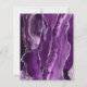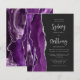 The left-hand edge of this elegant modern wedding invitation features a purple watercolor agate border trimmed with faux silver glitter. The customisable text combines silver grey calligraphy script and sans serif font on an off-black background. The reverse side features a matching purple and silver agate design.