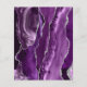 The left-hand edge of this elegant modern wedding invitation features a purple watercolor agate border trimmed with faux silver glitter. The customisable text combines handwriting, copperplate and italic fonts in silver grey on an off-black background. The reverse side features a matching purple and silver agate design.