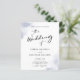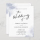 Budget All in One QR Code RSVP Chic Modern Black Calligraphy Dusty Blue Watercolor Wedding Invitation... Our affordable trendy minimalist dusty blue watercolor wash wedding invitation features modern calligraphy script combined with serif and sans serif text for a simple and chic wedding invitation. The back of the invitation also displays your wedding website QR code as well as the website's URL itself allowing your invitees to easily RSVP online and view all of the details normally sent in a wedding packet. The example QR code graphic template and all example text (aside from the graphic calligraphy elements) can be easily revised with your own information on the personalisation template.