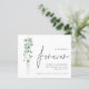 A value for money BUDGET alternative on a smaller size 4.5 x 5.6” semi-gloss 110lbs weight, which is of similar thickness to a postcard (however is not suitable to use as a postcard.). PLEASE NOTE there is ONE invite per sheet. QR Code Eucalyptus We Decided on Forever Wedding Save The Date. Add your wedding website QR code to the back. A stylish set typography in black for the word Forever complementing the rest of the text which you can easily personalize, with elegant Watercolor eucalyptus leaves to the left. On the back, a coordinating green.