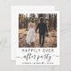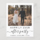 Budget-friendly elopement or private wedding announcement and all-in-one wedding reception invitation. The front features your photo, "Happily Ever After Party" in a mix of simple typography and a chic script with swashes and your first names and wedding or reception date joined together by a heart. On the back, input your wedding website address to create a QR code for guests to scan to see your wedding photos, all of the details and to RSVP online, and add your names in a signature-like script. This budget semi-gloss paper is similar in weight to photo paper. A larger 5x7 traditional card stock version is also available (message us for the link).