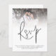 A value for money BUDGET alternative on a smaller size 4.5 x 5.6” semi-gloss 110lbs weight, which is of similar thickness to a postcard (however is not suitable to use as a postcard.). PLEASE NOTE there is ONE invite per sheet. Budget QR Code Photo Wedding RSVP Enclosure. Invite your guests to reply online. Add your QR code to the reply page of your wedding website on the back. An informal set typography in black for the main heading RSVP and the rest of the text which can easily personalise. Replace the sample photo with your own favourite of landscpae orientation.
