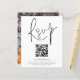 A value for money BUDGET alternative on a smaller size 4.5 x 5.6” semi-gloss 110lbs weight, which is of similar thickness to a postcard (however is not suitable to use as a postcard.). PLEASE NOTE there is ONE invite per sheet . QR Code Script Wedding Photo RSVP. A convenient option enclosure to ask your guests to scan your QR code to your wedding website to RSVP. A stylish set typography in black for the main heading RSVP complementing the rest of the text which you can easily personalise.