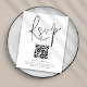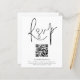 A value for money BUDGET alternative on a smaller size 4.5 x 5.6” semi-gloss 110lbs weight, which is of similar thickness to a postcard (however is not suitable to use as a postcard.). PLEASE NOTE there is ONE invite per sheet . QR Code Script Wedding RSVP. A convenient option enclosure to ask your guests to scan your QR code to your wedding website to RSVP. A stylish set typography in black for the main heading RSVP complementing the rest of the text which you can easily personalise.
