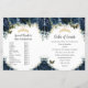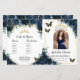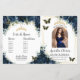 Budget Navy Blue Floral Quinceañera Program | Foldable Paper Sheet with Gold Accents & Butterflies