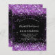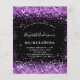 A modern, stylish and glamourous invitation for a Quinceañera, 15th birthday party. A black background with purple faux glitter dust. The name is written with a modern hand lettered style script. Personalise and add your party details.