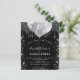 A stylish black background. Decorated with faux silver glitter and balloons. Personalise and add a name, age and party details. The name is written with a hand lettered style script