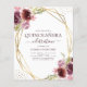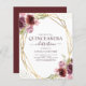 Budget Burgundy and Blush Pink Modern and Elegant Faux Gold Foil Geometric Frame Floral Watercolor Spring Quinceanera 15th Birthday Celebration Invitations - includes beautiful and elegant script typography with modern botanical flowers and greenery for the special fifteenth birthday celebration.