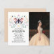 Budget Quinceañera Modern Gold Purple Butterfly Photo Floral Invitation features a simple yet elegant pink and purple butterfly amongst pretty flowers with your Quinceañera Invitation information below. Personalise by editing the text in the text boxes provided and adding your favourite photo. Designed for you by ©Evco Studio www.zazzle.com/store/evcostudio