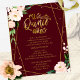 Elegant blush burgundy floral affordable quinceanera party 4.5”x5.6” invitations. PLEASE NOTE: The envelopes are NOT INCLUDE; matching A7 envelopes are available to be purchase separately.