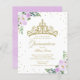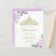 Elegant gold glitter tiara purple lilac floral affordable quinceanera party 4.5”x5.6” invitations. PLEASE NOTE: The envelopes are NOT INCLUDE; matching A7 envelopes are available to be purchase separately.