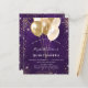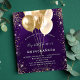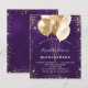 For an elegant Quinceañera, 15th birthday party. A trendy deep purple background. The purple colour is uneven. Decorated with faux gold glitter, sparkles and balloons. Personalise and add a name, age and party details. The name is written with a hand lettered style script