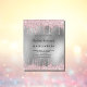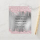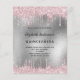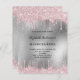 A modern, stylish and glamourous invitation for a Quinceañera, 15th birthday party. A faux silver metallic looking background with an elegant pink faux glitter drip, paint dripping look. The name is written with a black modern hand lettered style script. Personalise and add a name, age and party details.