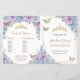 Budget Baby Blue and Purple Lilac Floral Quinceañera Program | Foldable Paper Sheet with Gold Accents & Butterflies