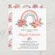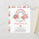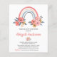 Personalise this Coral Blush Pink Floral Watercolor Vintage Style Rainbow Spring Baby Girl Baby Shower or Baby Sprinkle Budget Friendly Invitation on white background with your message and details. This chic invitation includes rose flowers and modern botanical greenery with cute and elegant script typography for the special Mother to Be celebration.