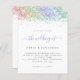A value for money BUDGET alternative on a smaller size 4.5 x 5.6” semi-gloss 110lbs weight, which is of similar thickness to a postcard (however is not suitable to use as a postcard.). PLEASE NOTE there is ONE invite per sheet. Rainbow Glitter Script Wedding Invitation. A multi coloured faux glitter border is at the top on each side. Easily personalise the text to your own details. You can also change the text and background colours via the customise further option if you wish.