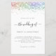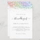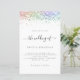Rainbow Glitter Wedding White Invitation. A LARGER 5.5” x 8.5” alternative at a budget price. Available in a SEMI-GLOSS 110 lb CARD STOCK or a 115 lbs LINEN EMBOSSED CARD STOCK (both recommended for invitations), there are also some THINNER PAPER choices (which are ideal for enclosures). PLEASE NOTE THE ENVELOPES SUPPLIED ARE A LITTLE BIGGER THAN THE INVITE AT 6.75” x 9” approx. A border of faux glitter is on each side, and The Wedding Of in a handwriting style script. Easily personalise the text to your own details. You can also change the text and background colours via the customise further option if you wish.