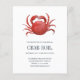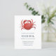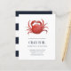 A fun summer party invitation, perfect for birthdays, bbqs or seafood related party! The design features a red watercolor crab with a blue striped back.