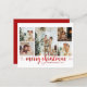 Modern Red Merry Christmas Heart Script 5 Photo Holiday Card