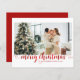 Modern Red Merry Christmas Heart Script Photo Holiday Card