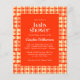 Invite loved ones to celebrate the mum-to-be with these bright and cheerful baby shower invitations featuring a retro-inspired orange and cream geometric pattern. Perfect for those planning a fun and vibrant event, this design pairs modern typography with bold colours to create an eye-catching and playful vibe. Customisable with all your event details, these invitations are ideal for casual or themed showers and are available on a budget-friendly paper option, making them a stylish yet affordable choice for your special day.