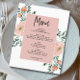 Budget Romantic Peach Floral Wedding Menu Card