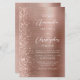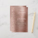 The left-hand edge of this elegant modern wedding invitation features a rose gold faux glitter border. The customisable text combines white handwriting, copperplate and italic fonts on a rose gold faux brushed metal background. The reverse side provides space for wedding details on a rose gold brushed metal background, along with a QR code guests can scan to visit your website and RSVP, which saves the cost of printing and mailing separate RSVP cards.
