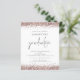 PLEASE NOTE There are two paper options to choose from for this size (4.5 x 5.6”) in the Budget range. For this product, I would highly recommend the semi-gloss which is a 110 gsm card stock, similar in thickness to a postcard. The Satin option is a much thinner paper 80gsm. The default is set to semi-gloss. PLEASE NOTE there is ONE invite per sheet. Budget Rose Gold Glitter 2024 Graduation Invitation. Elegant rose gold faux glitter borders are at the top on the both sides. Graduation is in a stylish set script. Easily personalise the rest of the text to your own requirements.