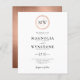 Set the elegant feel for your wedding day with this affordable rose gold foil monogram design.