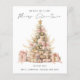 A budget priced smaller 4.5 x 5.6" alternative on a 110lbs semi-gloss, similar in thickness to a postcard. There is ONE per sheet. Budget Rose Gold Tree 2026 Calendar Merry Christmas is in a stylish set handwritten style script. With a handy 2026 calendar on the back for your recipients and Happy New Year greeting.