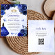 This lovely quinceañera invitation features a border of royal blue roses on a blue watercolor background. A gold tiara, a dark-haired girl in a royal blue princess dress and small blue butterflies decorate the text. The word "Quinceañera" and the name of the guest of honour appear in elegant royal blue handwriting script, with the remaining text in grey sans serif font. Add additional text on the back, along with a QR code to help your guests visit your quinceañera website and RSVP online.