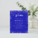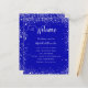 A modern, elegant wedding program, timeline. A royal blue colored background decorated with faux silver glitter dust. Personalize and add your names and wedding details. White colored letters. If you have more text it's possible to reduce the line space.