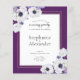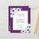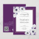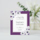 Budget Royal Purple Floral and Gold Frame QR Code Evening Party Invitation. The font colour and type can be changed via the edit menu. You can also change text and background colours on either side if you wish. A value for money smaller 4.5 x 5.6 inch alternative defaulted to the semi gloss option which is recommended for invitations and is a similar thickness to a postcard. The satin option is much thinner. Add your QR code to your wedding website on the back as a convenient option for your guests to RSVP. QR codes can be created free online. Simply search “QR code creator” and select one of the free creators. You can also remove the QR code should you wish.